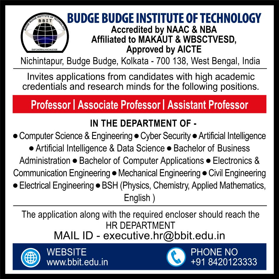 BBIT invites applications from candidates with high academic credentials and research-craving minds with the position of teaching.